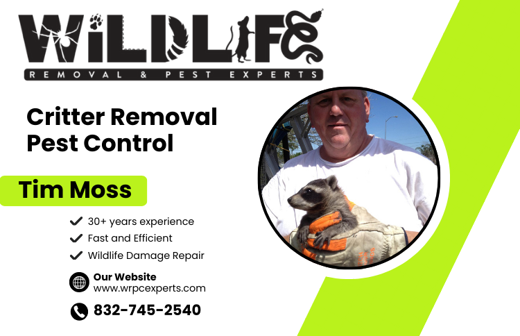 Tim Moss, owner of Texas Wildlife Removal Experts, is a trusted specialist in humane wildlife control and property protection across the Greater Houston, Conroe, and North Texas areas. With years of hands-on experience, Tim and his team help homeowners and businesses safely remove unwanted wildlife while preventing future infestations through professional exclusion and damage repair services.